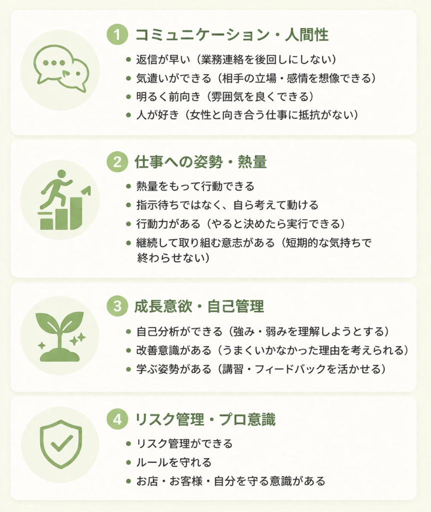 技術や経験以上に、姿勢・意識・成長意欲を重視しています。